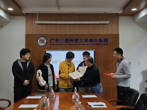 会后,商学院党委书记肖喜明、伟德bv国际体育党委书记黎冬向四位同学赠送了致谢慰问品。