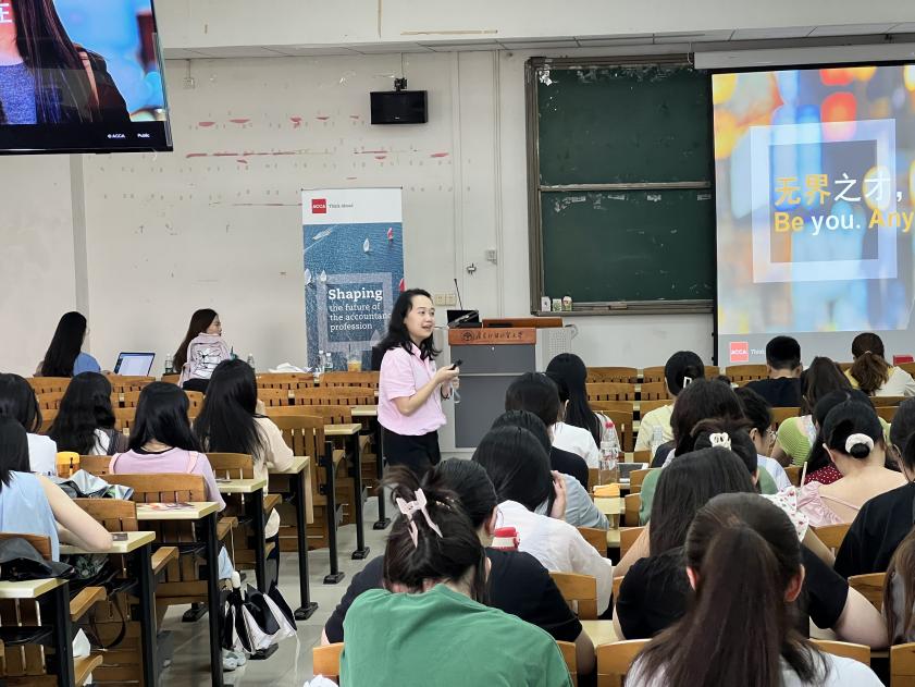 在宣讲会上,Carmen首先向新生们介绍了ACCA的发展历程,与政府部门、行业协会如广东省注册会计师协会、香港特别行政区财政司以及中国注册会计师协会等的深度合作。她强调了ACCA证书的含金量,获得全国20+省市40+项人才激励政策的认证,以及雇主对ACCA证书的高度认可。