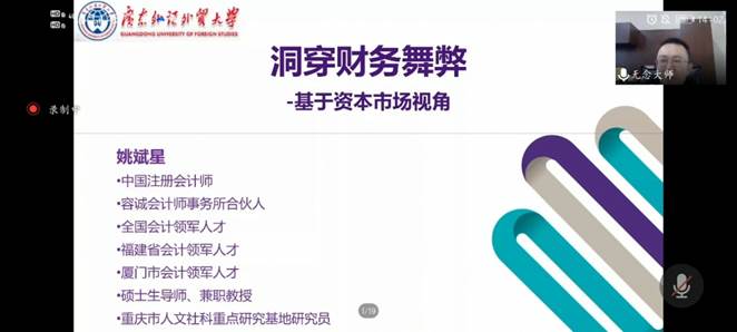 为增强学院师生对审计行业和财务舞弊的认识,会计师事务所实务工作坊第九场专题讲座于202178日下午顺利开讲。容诚会计师事务所(广州)合伙人姚斌星以“资本市场的财务舞弊审计”为主题开讲,本场讲座由伟德bv国际体育MPAcc教育中心主任池海文主持。