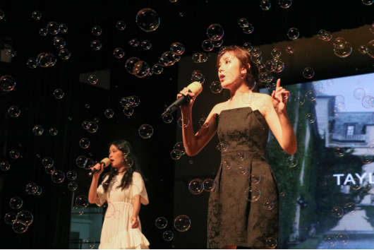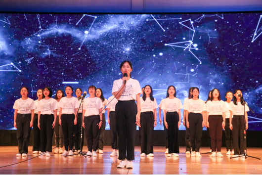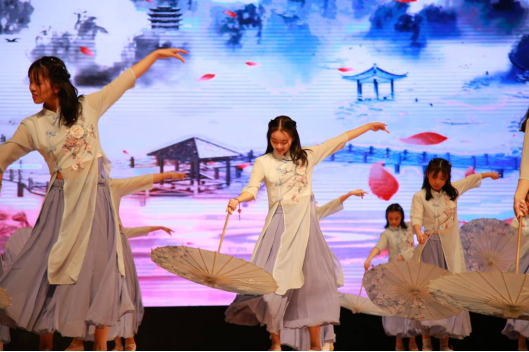 ACCA2001班的精彩表演之后,Amusi歌队演唱的歌曲《Blank Silence》让现场沸腾,引得观众尖叫欢呼。院民舞队精心编排舞蹈《花雨落》向母校献礼,她们曼妙优雅,展现古典优美之形。纸伞翻飞,婉转而轻柔,让观众们体会到中华优秀传统艺术文化之美。