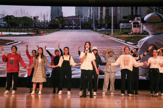 紧接着,由绿洲音乐协会带来的歌曲《La La Latch》,这是以纯人声、无伴奏的表演形式阿卡贝拉来演绎,给人以最原始的听觉享受,让现场观众切身感受到了音乐中纯粹的魅力。一首动听的音乐之后,ACCA2001班的同学演绎的《青春的逆行》将观众们拉回到现实的感动中,为观众们重温身边的感人抗疫故事,号召同学们以己之所学,报效国家和社会。
