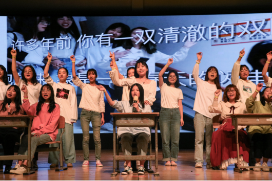 之后,校艺术团的同学带来的话剧《广外攻略》反映并抨击了现时代背景下人们仅仅逐利的心理,号召同学们要德才兼备,在读好书的前提下全面发展自己。接着,20级会计专硕小语种创新班给观众带来了独具特色的多语种版《你曾是少年》,他们用不同的语言表达了青年最无坚不摧的力量,也展现了广外“学贯中西”的鲜明特色。