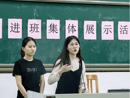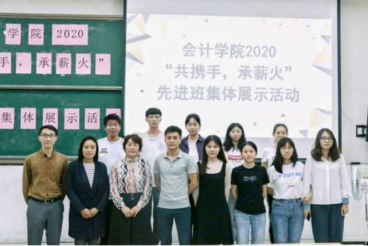 紧接着,先进班集体:会计1802班、ACCA1801班、审计1803班、财管1801班和会计工管1901班的班委代表展示和分享了他们班级建设的经验。各展示班级分别从班级制度建设、班级活动、团支部建设、学习成绩、学风建设、文体活动等方面依次进行详细的展示,同时就如何更好地开展团日活动进行了经验分享,让同学们对优秀班集体建设有了更进一步的了解。分享的班级通过现场宣讲、视频及诗歌朗诵等多种方式进行。