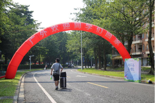 返校日当天,学生在工作人员的指引下,有序进行体温检测、洗手消毒、更换口罩、行李杀毒、出示粤康码与行程码、登记返校确认信息、领取防疫礼包等进校流程,环环相扣、无缝衔接,确保了学生安全进入校园。整个返校程序在多方配合下顺利开展,报到现场有条不紊、井然有序,沉寂了8个多月的校园因为同学们的到来恢复了昔日的生气。
