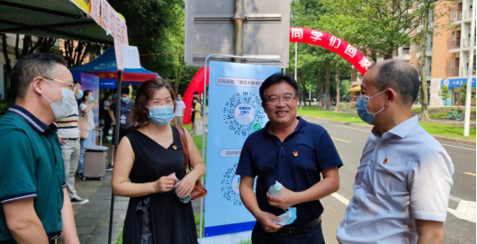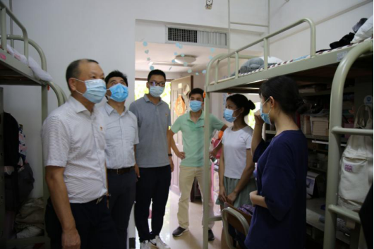 晚上八点,学院党委书记黎冬、党委副书记杜焕君、副院长蒋基及辅导员周雅颂、陈瑶、张亦舒来到学生宿舍,走访慰问2019级本科学生及研究生。“你们从哪里回来”“被子都晒过了吗”,黎书记和蒋副院长十分关心学生返校后的情况,耐心解答了学生们提出的问题,叮嘱学生坚持上报身体状况,科学做好个人常态化健康防护。得知个别宿舍没有冷气供应,杜焕君书记立即与学校有关部门反映情况,并表示遇到什么困难与问题都可以及时联系辅导员老师,学院一定会为同学们的学习生活提供全面保障。