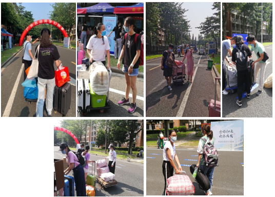 学院领导、辅导员老师、教工党员志愿者和学生志愿者均提前抵达报到点热情迎接学生的到来,亲切地和同学们打招呼,帮助同学们熟悉进校流程,了解学生们的具体返校情况,为同学们搬送行李,及时为学生解决问题,让同学们感受到了家一般的温暖。