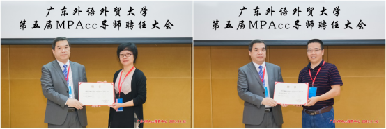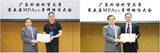 在本次聘任大会上,焦方太副校长为受聘为第五届MPAcc的校外导师们颁发聘书,并合影留念。