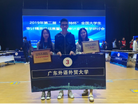 2019年10月27日,审计系主任黄浩老师率领陈楚倩、陈伊诺、潘道勤三位同学参加由中国审计学会审计教育分会主办,南京审计大学承办,广州市福思特科技有限公司提供技术支持的2019年第二届“福思特杯”全国大学生审计精英挑战赛暨全国审计实践教学研讨会,来自东南大学、上海对外经贸大学、南京审计大学、西南政法大学、辽宁大学、石河子大学、江西财经大学和山西财经大学等全国97个兄弟院校的师生汇聚一堂,共同见证此次盛会。