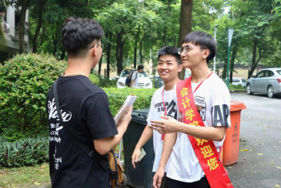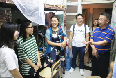 晚上八点,南校生活区下着大雨,学院党委书记谢伟光、副书记杜焕君、副院长左志刚、蒋基路带队辅导员周雅颂、刘志鹏、陈瑶、张亦舒,走进新生宿舍,分别走访慰问本科新生及研究生新生。