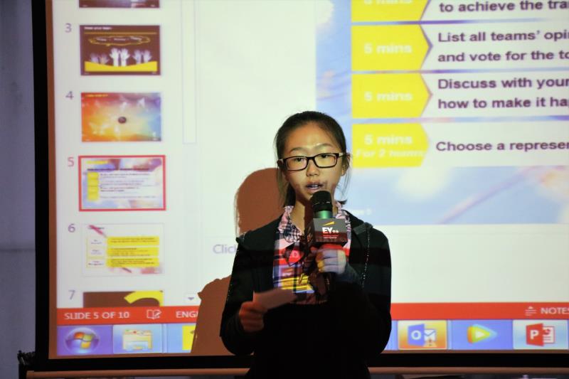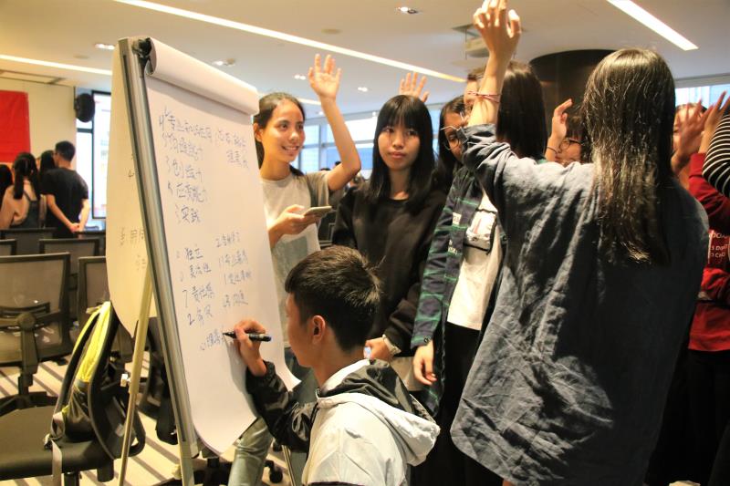 首先主持人引导大家进行一个名为“Meetyour team”的小游戏,为本次活动暖场。同学们被分为四个小组,各个小组需要介绍出组内每位相邻组员的看不见的共同点和整组所有队员的三个共同点。大家在欢声笑语中寻找着那些看不见的共同点,慢慢地形成了良好的团队氛围,为接下来的小组合作的环节做了很好的铺垫。