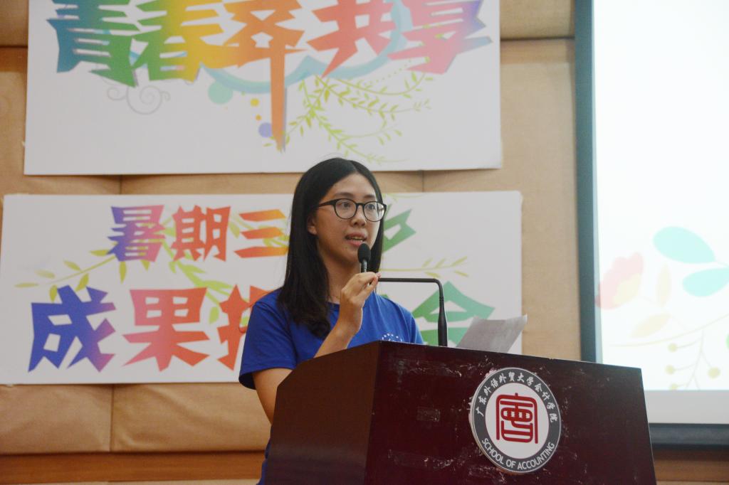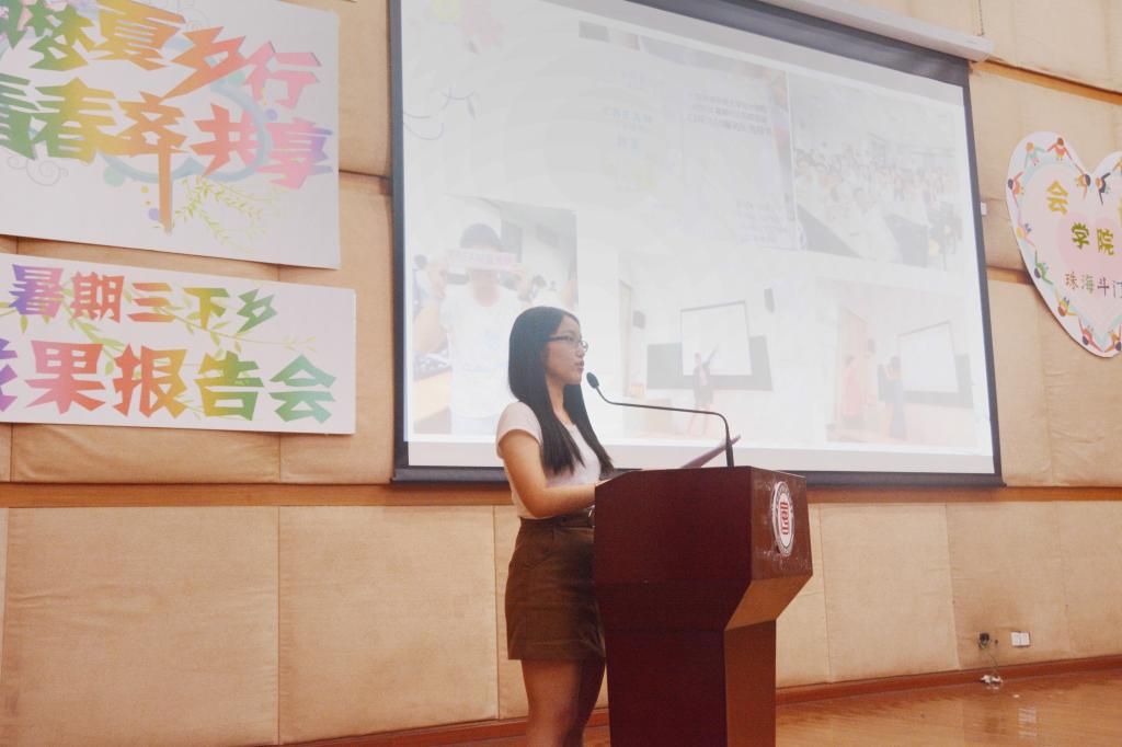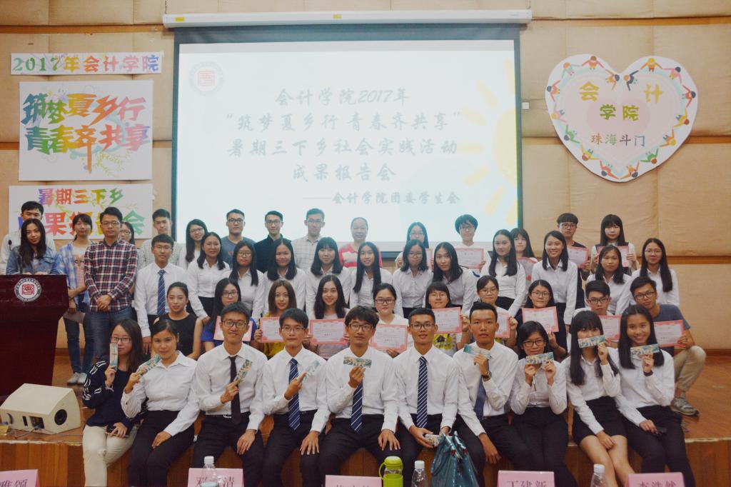 参与会计学院2017年“三下乡”社会实践活动的8支服务队伍的代表们以4×2的形式,结合精心制作的PPT和视频,分别为观众们做出成果汇报。