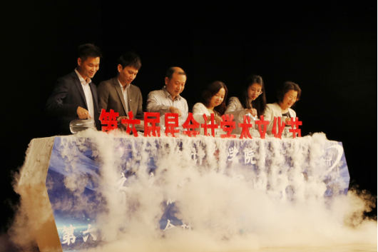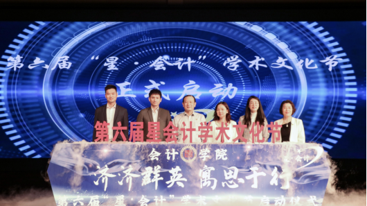 接着,莫威威先生、杜维伟先生、何莹女士、蔡孟烨女士、伟德bv国际体育黎冬书记和杜焕君书记受邀上台参与“星·会计”启动仪式。随着红色字体缓缓升起,映衬着本届“济济群英、寓思于行”的主题,宣告着第六届“星·会计”学术文化节正式开始。