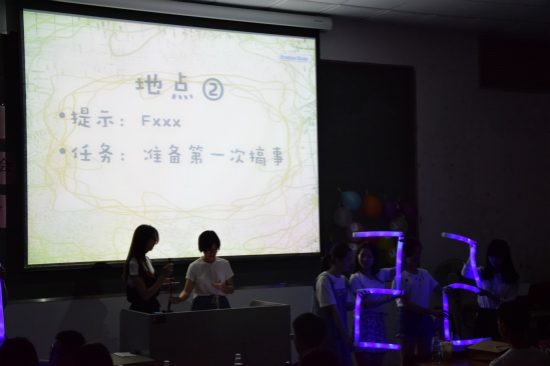 会上,邓海清老师首先发表讲话,对整个团学各部门一年来的工作表示了感谢,并为大家的工作打上101分的成绩激励会院团学大家庭。紧接着,各部门便开始了精彩纷呈、形式多样的展示。组织部、志愿者协会、办公室都以视频短片的方式展示了部门的风采;实践部、调研部则分别以定向越野、问答的形式回顾了一年来部门的工作;宣传部的“烧脑大片”《穿越奇缘之拯救宣宣》因其新颖的内容以及出色的特效,引得现场掌声雷动、赞叹不已。