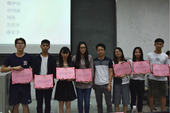展示环节结束后,则是表彰环节。在这环节中,学术部、外联部、组织部分别获得了优秀部门的称号,而每个部门也分别有两名到多名不等的干事接受了优秀干事表彰。随后,由邓海清老师、李思宁、梁献文颁发二届一任成员聘书,以表达对会院团委学生会管理层各位成员一年工作的肯定与赞扬。