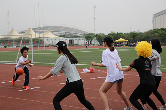 在不远处,更激烈的比赛正在进行。“躲避球”是比赛的另一个环节,传球,击球,躲避,场上的每一个人都全神贯注地追随着球的动向,从而第一时间作出反应。但重要的并不是输赢,场上的每一个人都洋溢着笑容,在比赛中大家的心更加靠近,这才是真正的收获。