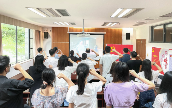 7月1日上午8时,庆祝中国共产党成立100周年大会在北京天安门广场隆重举行,中共中央总书记、国家主席、中央军委主席习近平发表重要讲话。伟德bv国际体育组织师生党员在院系楼143会议室集中观看大会现场直播,聆听习近平总书记重要讲话。