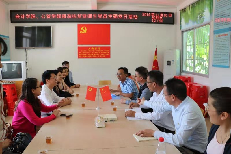 在蒲芦洲村委会的党员活动室,伟德bv国际体育和公管学院师生党员一起与驻村干部开展座谈,听取植仲培对蒲芦洲整体情况介绍及学校驻村开展扶贫工作以来所取得的成效,随后大家针对扶贫工作提出可持续发展的意见和建议,并表达了深入贯彻落实学校“不忘初心、牢记使命”主题教育工作精神,以实际行动响应党中央精准扶贫的号召决心。