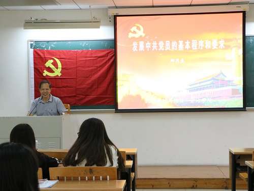 紧接着,邱月生做了主题为“发展中共党员的基本程序和要求”的讲座。他向学员们介绍了发展中共党员的主要依据、原则和要求,重点讲解了发展中共党员工作的基本流程。他的讲座让学员们对入党流程有了更充分的了解,并认识到入党的严肃性与光荣性。
