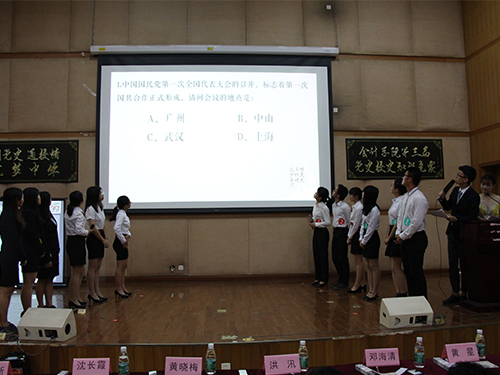 2017 518 晚,伟德bv国际体育第三届“明党史,通校情,筑梦广外”党史校史知识竞赛决赛于南校区图书馆报告厅顺利举行。本次比赛将党史和校史知识紧密融合,并突出时政热点。伟德bv国际体育党委副书记黄晓梅、学生党建小组指导老师沈长霞、辅导员邓海清、丁建新等出席了比赛并担任评委。本次比赛特别邀请了马克思主义学院的洪汛老师担任比赛评委并进行点评。