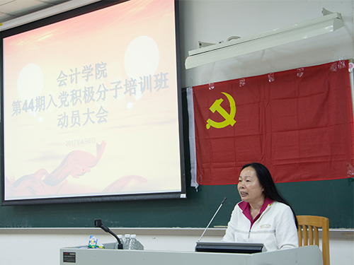 首先,黄晓梅作动员讲话。黄晓梅对参加入党积极分子培训班学员表示衷心的祝贺,并代表学院党委对学员提出了两点基本要求:第一,要全面掌握党的基本知识和理论,并将其贯彻到日常的学习、工作和生活中,起到好的带头作用;第二,希望学员们不断端正入党动机,树立坚定的共产主义理想。在讲话的最后,黄晓梅提出了对学员们的期望:希望全体学员能用自己的实际行动站在党旗底下,以实际行动向党组织靠拢,早日加入中国共产党。