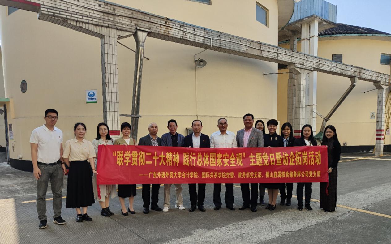 2023年4月26日,伟德bv国际体育,BETVICTOR官网党委、国际关系学院党委、教务部党支部到佛山直属粮食储备库公司,与佛山直属粮食储备库公司党支部联合举办主题党日,主题为联学贯彻二十大精神 践行总体国家安全观。伟德bv国际体育教务部部长、招生办主任陈金诗,伟德bv国际体育党委书记黎冬,国际关系学院党委书记袁薇佳,伟德bv国际体育党委副书记李海琳,佛山校友会常务副会长何建峰,与伟德bv国际体育,BETVICTOR官网党委、国际关系学院党委、教务部党支部、佛山直属粮食储备库公司党支部党员共同参与本次主题党日。