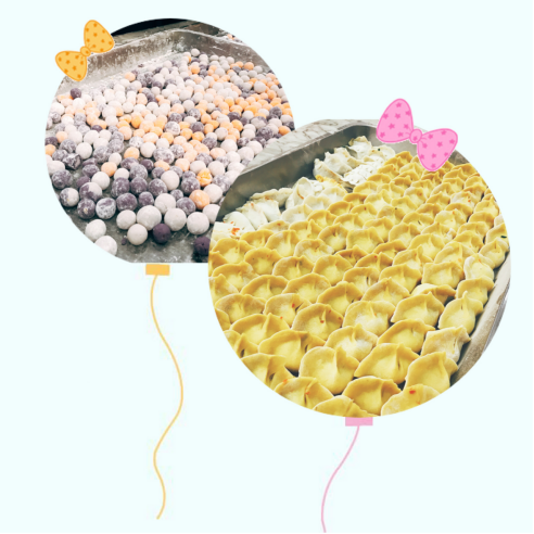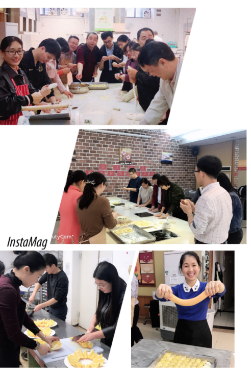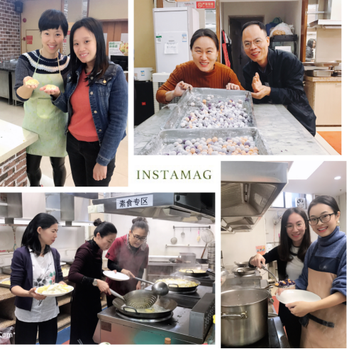 “瞧瞧,我包的饺子如何?”不时传来一阵阵笑声。在包饺子的过程中,大家热情高涨,边聊边包,互帮互教,各显技能,一会儿形态各异的饺子就“出炉”了。教师们还利用现有材料制作三色芋圆、凉拌菜等等。到处萦绕着欢声笑语。