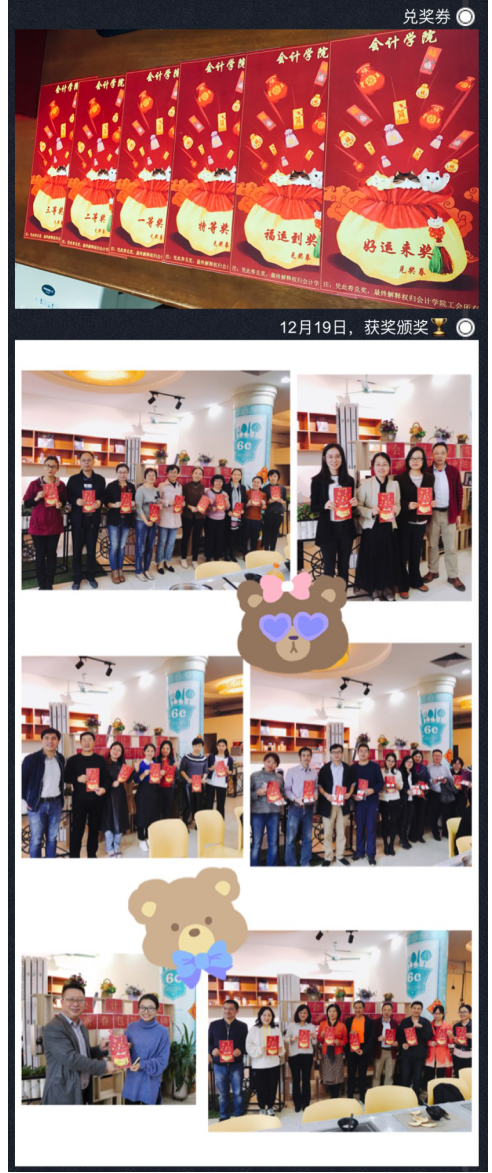 包饺子评奖、抽奖环节由学院工会主席汤胜主持,院领导班子成员依次揭晓奖项,掀起了新一轮活动高潮。教师们满分期待,现场气氛更是激动而欢乐。