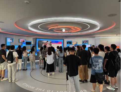 在三七互娱相关负责人的引导下,师生们首先参观了企业展厅。通过讲解员系统讲解,师生们详细了解了三七互娱的发展历程、产业布局、科技创新成果以及履行社会责任的情况,对这家数字文娱行业的领军企业有了直观认识。