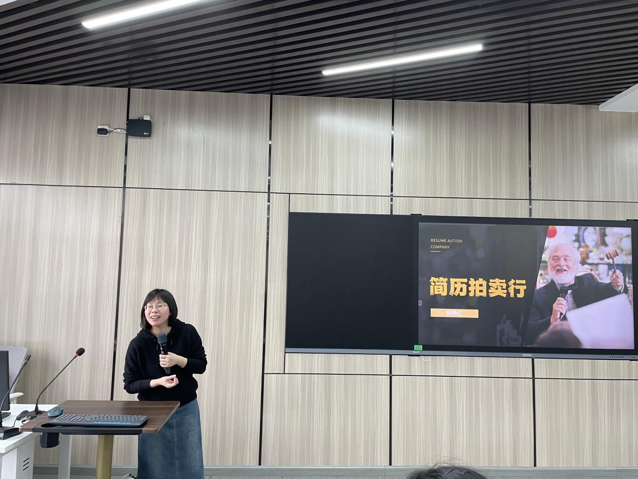 她在教育经历,实习经历,技能掌握和证书掌握四个方面列举了不同层次的选项,让在场的同学通过竞拍的方式去完善自己的简历,根据不同的标价和未来创造的价值让同学深刻的体会到了提升各个维度在未来发展的重要性。