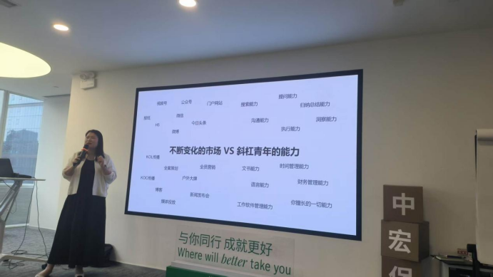 对于同学们提出的保险行业对人才的能力要求、职业发展规划等疑问,中宏保险JUDY老师分享了从追求卓越、乐于学习、高效执行、目标管理、关系经营、沟通影响六个维度来评估精英潜质的人才模型。广告学专业05级校友、中宏保险程颖怡通过其丰富的职业生涯经历,提醒同学们要善于抓住机会,积极为自己创造实践机会,强调干一行爱一行,一旦做出选择,就要投入其中,努力做好,持续学习,不断积累经验和成长;强调市场变化是永恒的,培养丰富自身综合能力才是关键。中宏保险邓玲分享其职业生涯经历中,表明职业选择不一定受专业限制,兴趣和自身特质至关重要,机遇缺一不可,坚持做对的事,持续学习成长,必有收获。