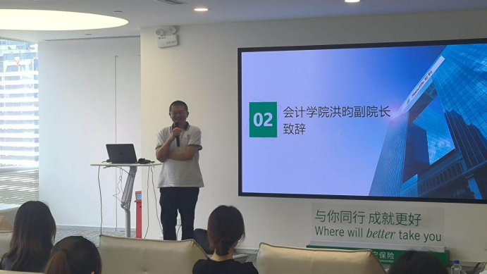 首先,副院长洪昀老师代表学院致辞。其表示学院举办生涯班会,是希望打破校园与职场之间的信息壁垒,通过到企业实地参观,与校友面对面交流,帮助同学们深入思考职业选择,布局人生规划,从而有针对性安排自己的大学生活,全方位培养自身能力,为未来职业发展奠定坚实基础。