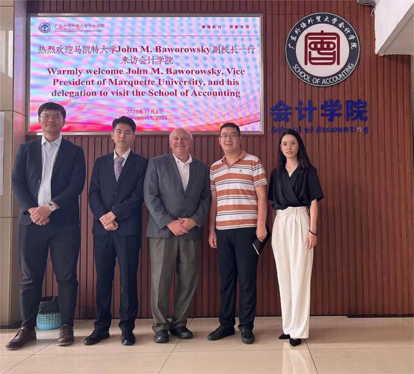 近日,美国马凯特大学副校长John M. Baworowsky率领代表团一行访问了伟德bv国际体育,BETVICTOR官网,代表团成员还包括马凯特大学中国区课程中心主任高崇和马凯特大学中国区课程中心项目总监魏洪亮。伟德bv国际体育院长助理、会计系主任曹瑜强和伟德bv国际体育外事联络人曾馥菡参与了接待工作。